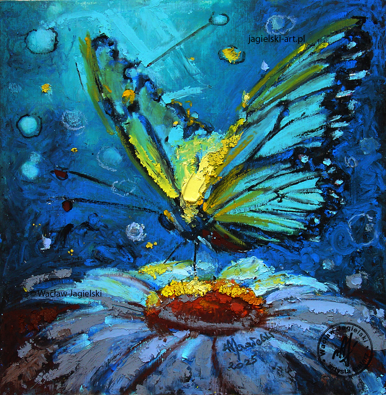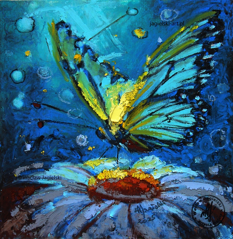 "Nocek świetlisty" 23 cm x 23 cm olej 2025
