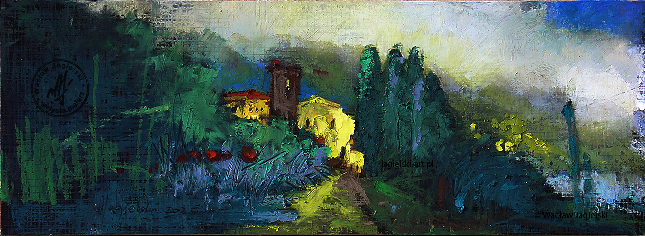 "Krajobraz z cyprysami" 11 cm x 31 cm tech. własna 2025 Zapytaj o obraz Zobacz symulację "Krajobraz z cyprysami" 11 cm x 31 cm tech. własna 2025 Zapytaj o obraz Zapytanie o obraz ""Krajobraz z cyprysami" 11 cm x 31 cm tech. własna 2025":